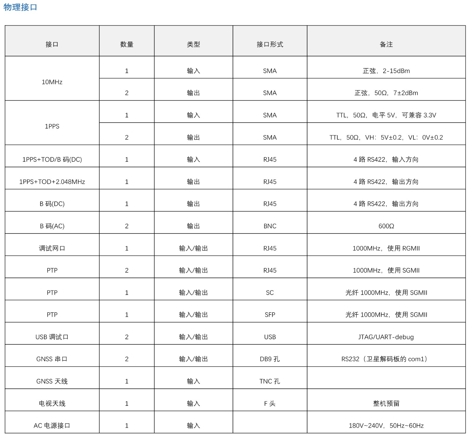 频率具有1PPS+TOD、B码(DC)授时功能;NTP、PTP等网络授时功能;输出10MHz频率信号功能;