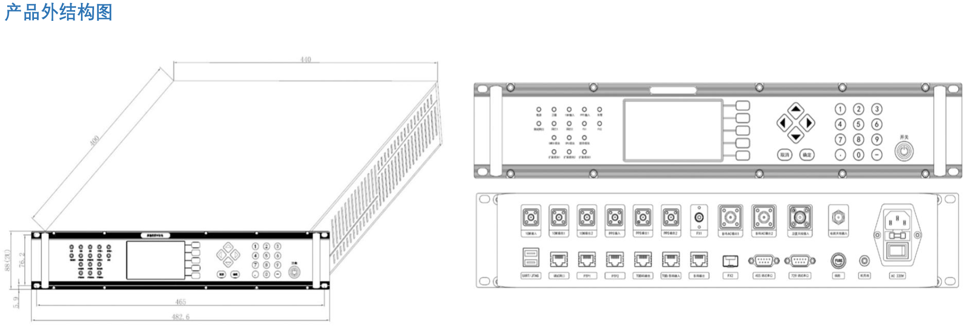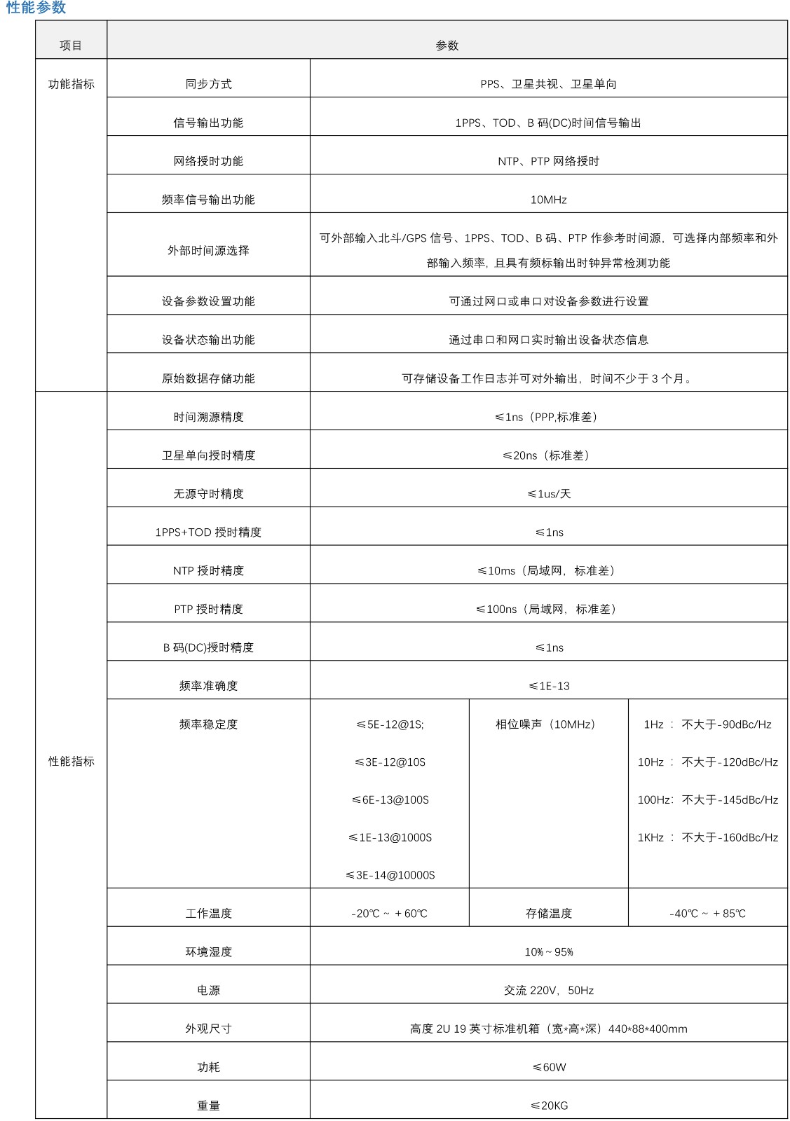 频率具有1PPS+TOD、B码(DC)授时功能;NTP、PTP等网络授时功能;输出10MHz频率信号功能;